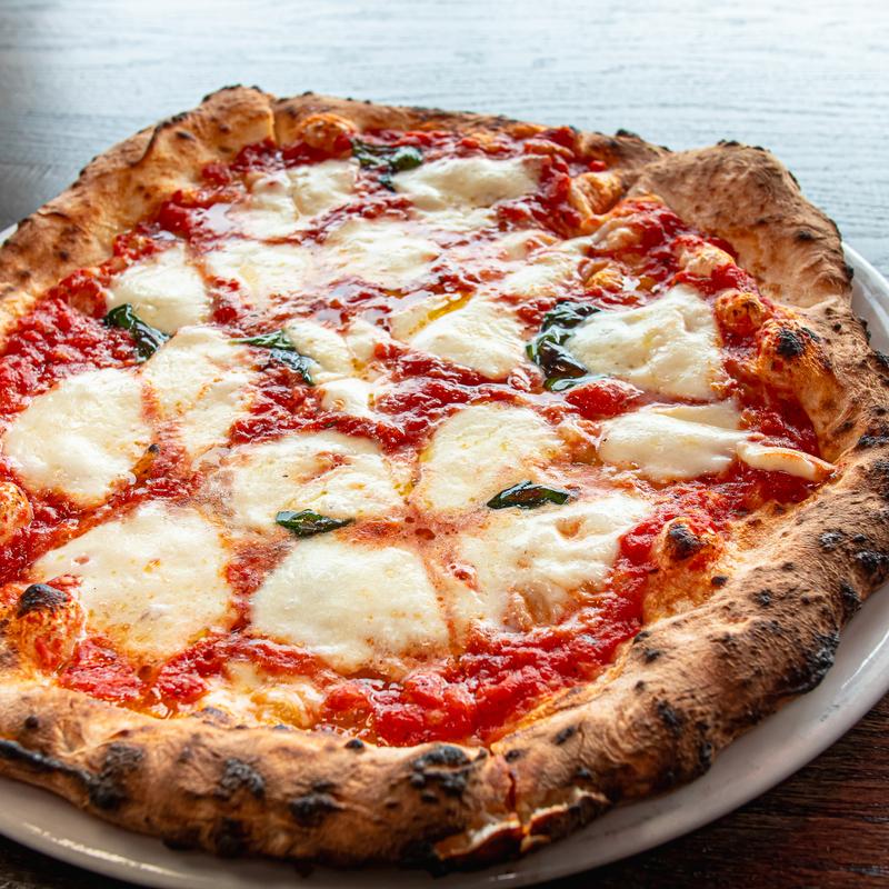 Fresh mozzarella, basil, coppa, tomato sauce, EVOO.